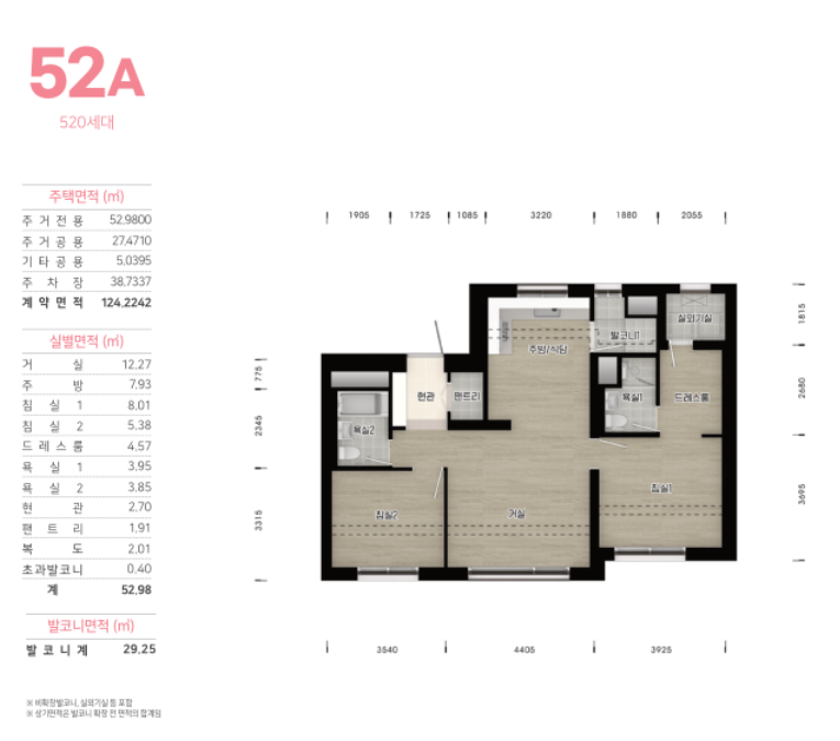 - 전용 52㎡: 520세대