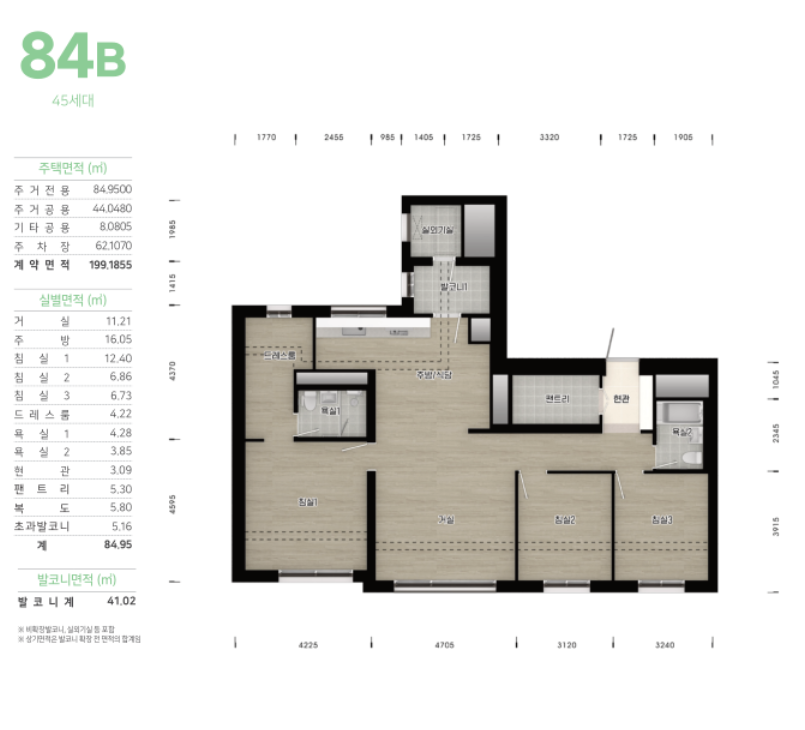 - 전용 84㎡: 90세대 (84A형, 84B형)